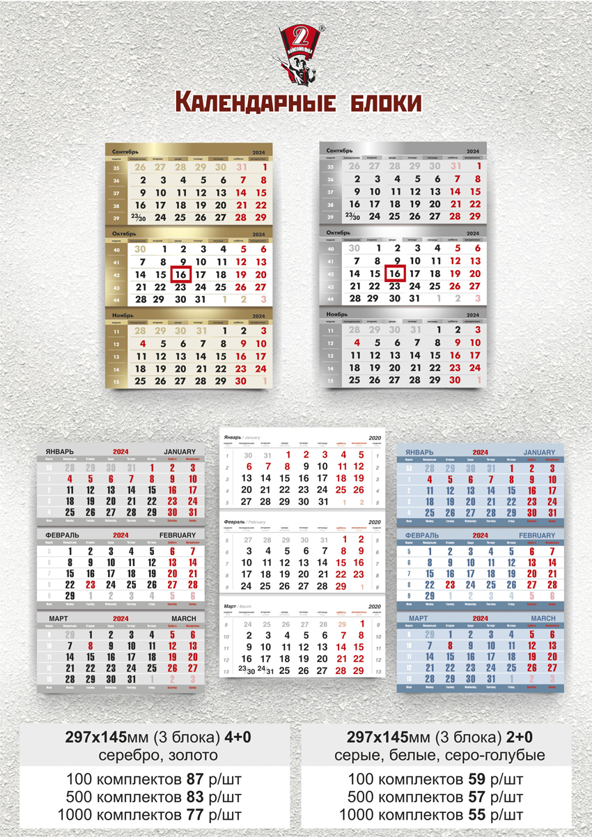 Спецпредложения23.09.2025 / Календарная программа на 2026 год 23.09.2025 / Образцы календарных сеток для квартальных календарей : Календари квартальные : - Календари квартальные А4, все виды с сетками 2+0 / 4+0 (pdf, 5 страниц) Информацию по другим видам календарей (настенные перекидные, настольные-перекидные, календари-домики, настенные плакатные, карманные) можно уточнить у менеджеров типографии по телефону (351) 729-9-729. Вернуться к спец. предложениям |